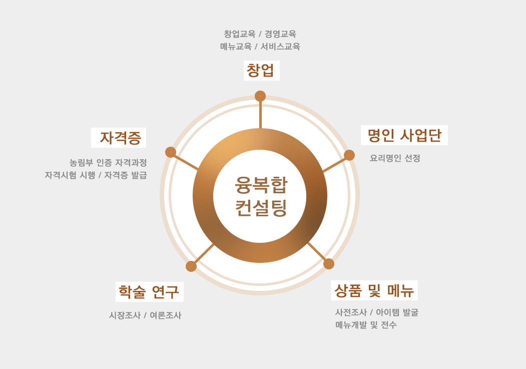 ¿Ü½Ä À¶º¹ÇÕ ÄÁ¼³ÆÃ Àü¹®±â°üÀ¸·Î °ü±¤ ¿Ü½Ä»ê¾÷, ½Äǰ °³¹ß, 6Â÷ »ê¾÷ ¹ß±¼, Àü±¹ ÀüÅë½ÃÀå Ȱ¼ºÈ, ºê·£µå °³¹ß, Çмú¿¬±¸ µî °Ç°ÇÑ ¸Ô°Å¸®¿Í ¿ì¼ö »óǰ°³¹ßÀ» À§ÇØ È°¹ßÇÑ ¿¬±¸¸¦ ÁøÇàÇϰí ÀÖ½À´Ï´Ù.